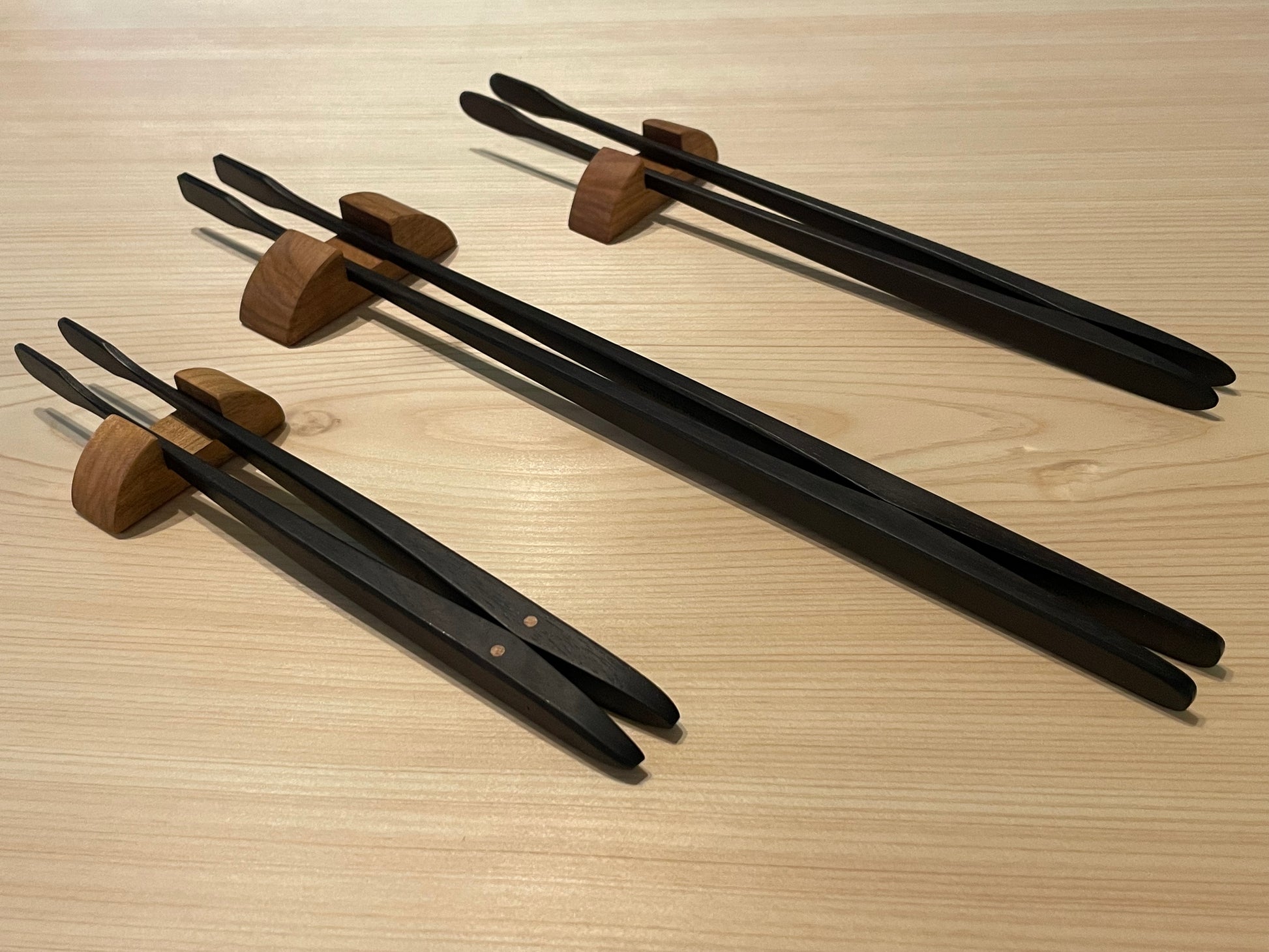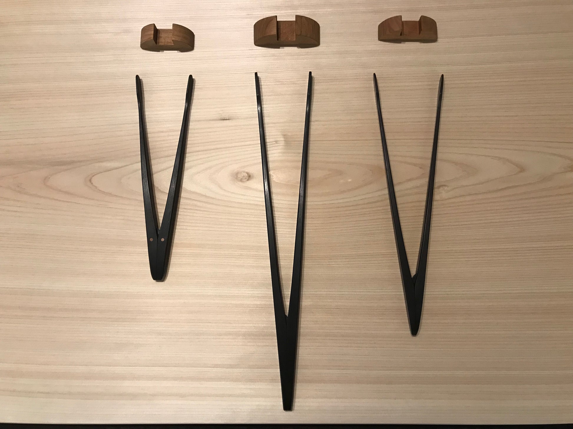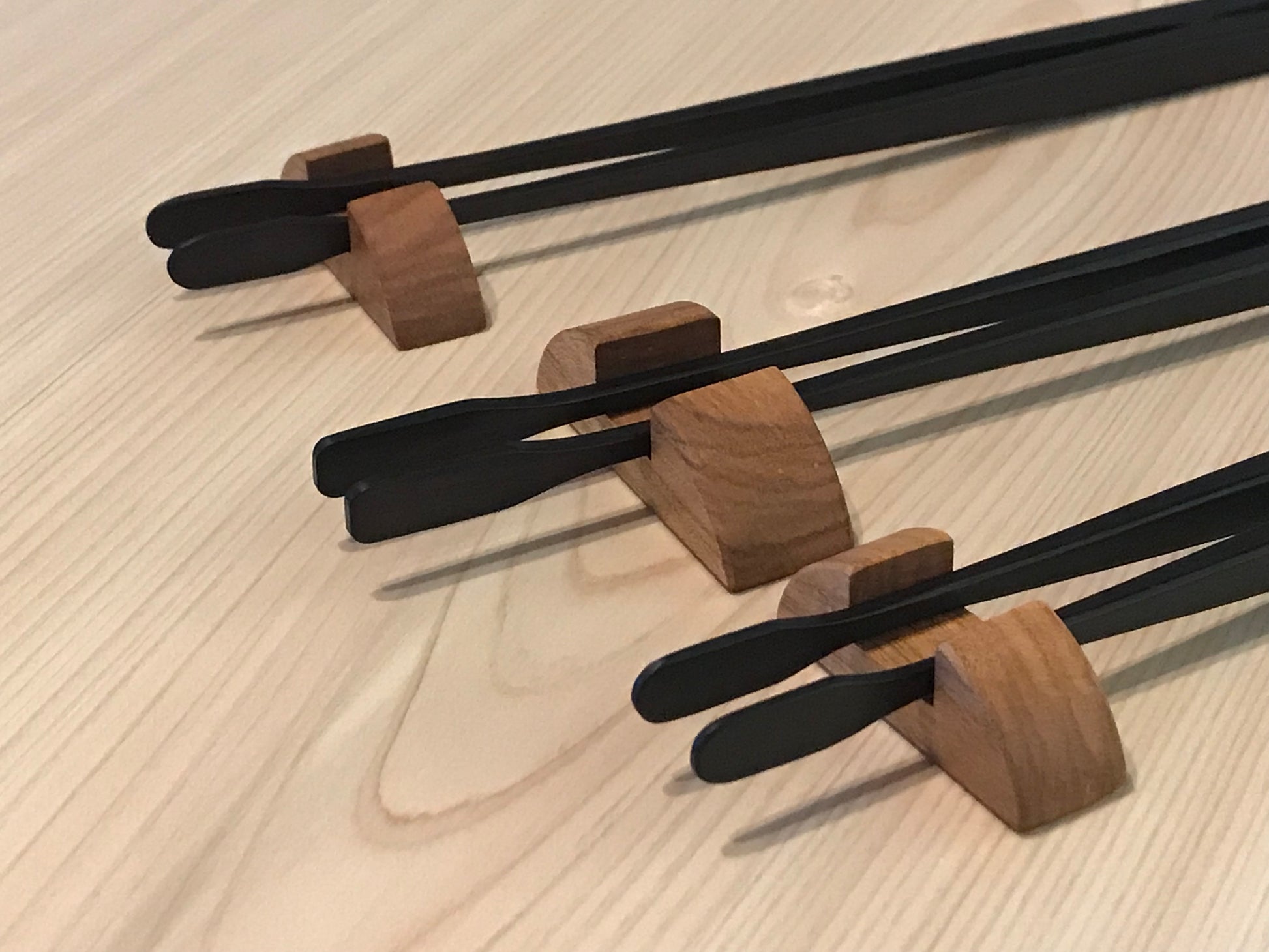 Wooden tweezers like chopsticks that use the magnetic force of a magnet.